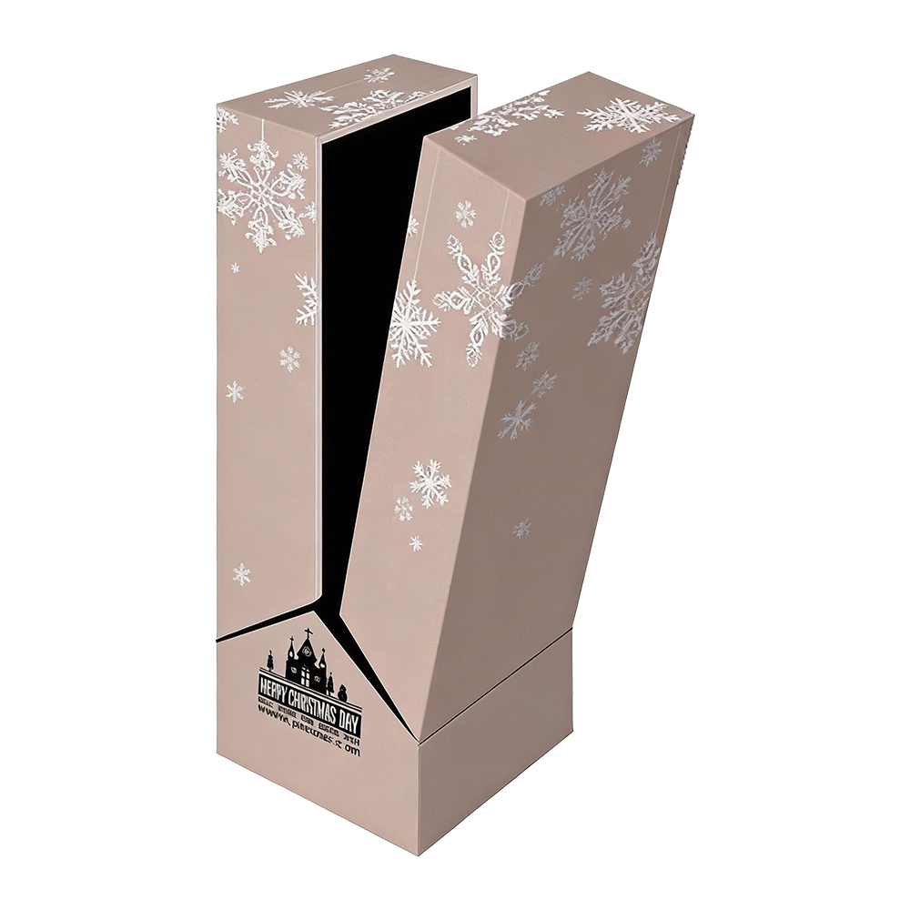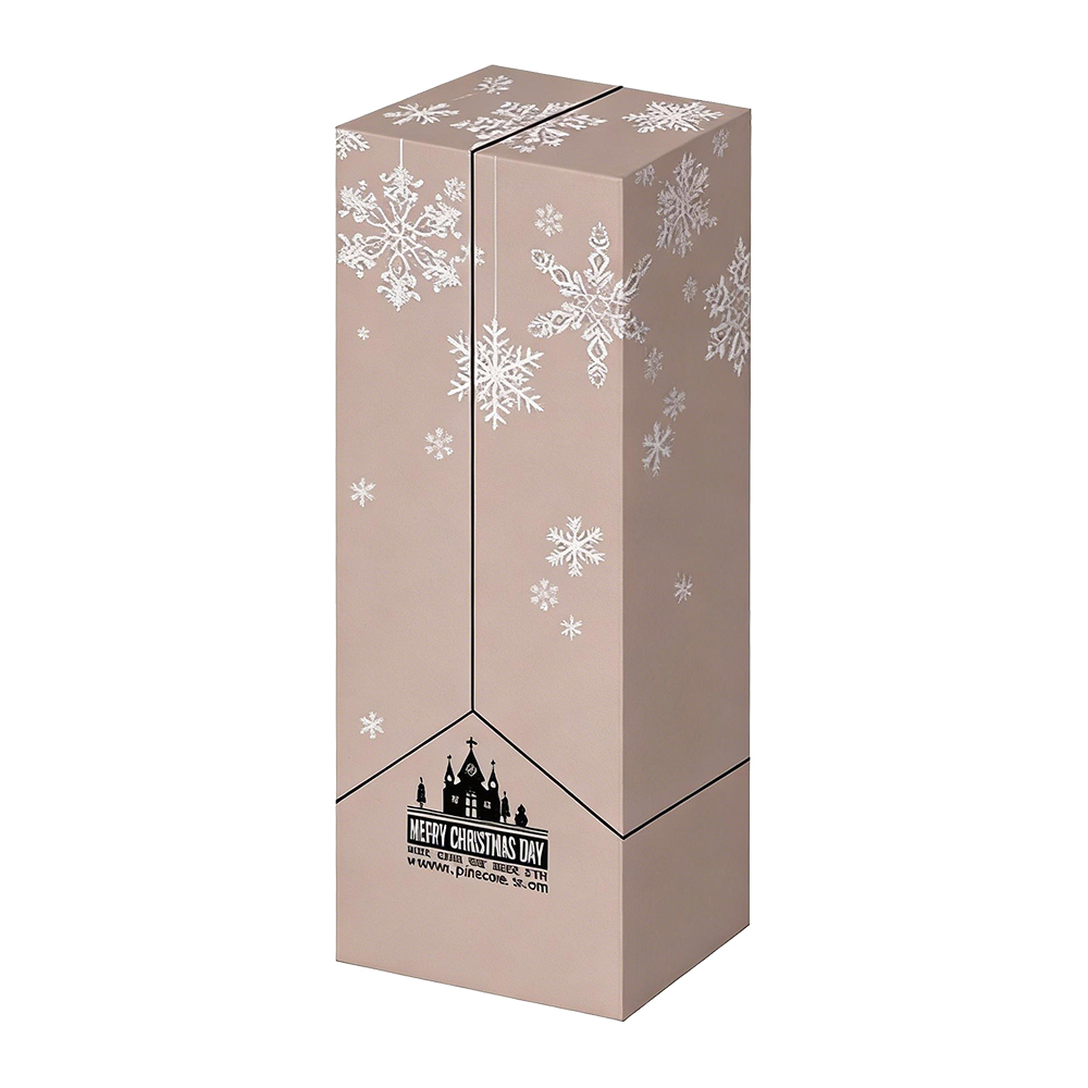 Packaging is the silent storyteller of the holiday season. Our bespoke festive rigid box breaks the traditional cubic mold with a dynamic angular opening mechanism. The exterior features a sophisticated taupe palette adorned with delicate white snowflake illustrations and a minimalist cathedral silhouette, evoking a sense of peaceful winter wonder. This design is crafted to turn a seasonal gift into a memorable unboxing event.