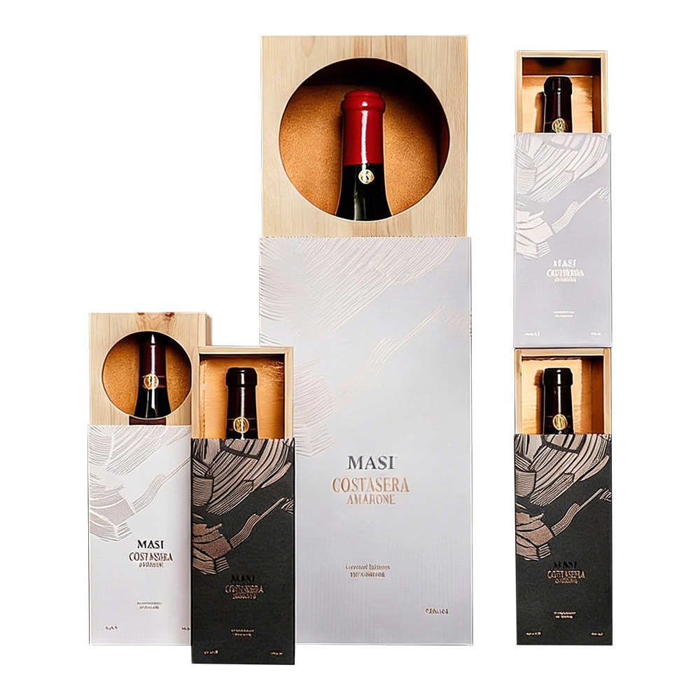 The centerpiece of this design is the circular geometric aperture on the wooden frame, perfectly framing the bottle to create a sense of visual depth and prestige. We utilize precision CNC woodworking to ensure a seamless fit between the solid wood base and the premium printed artistic sleeves. The contrast between the tactile wood grain and the sophisticated graphics creates a dynamic rhythm, ensuring an unforgettable unboxing ceremony for wine connoisseurs.