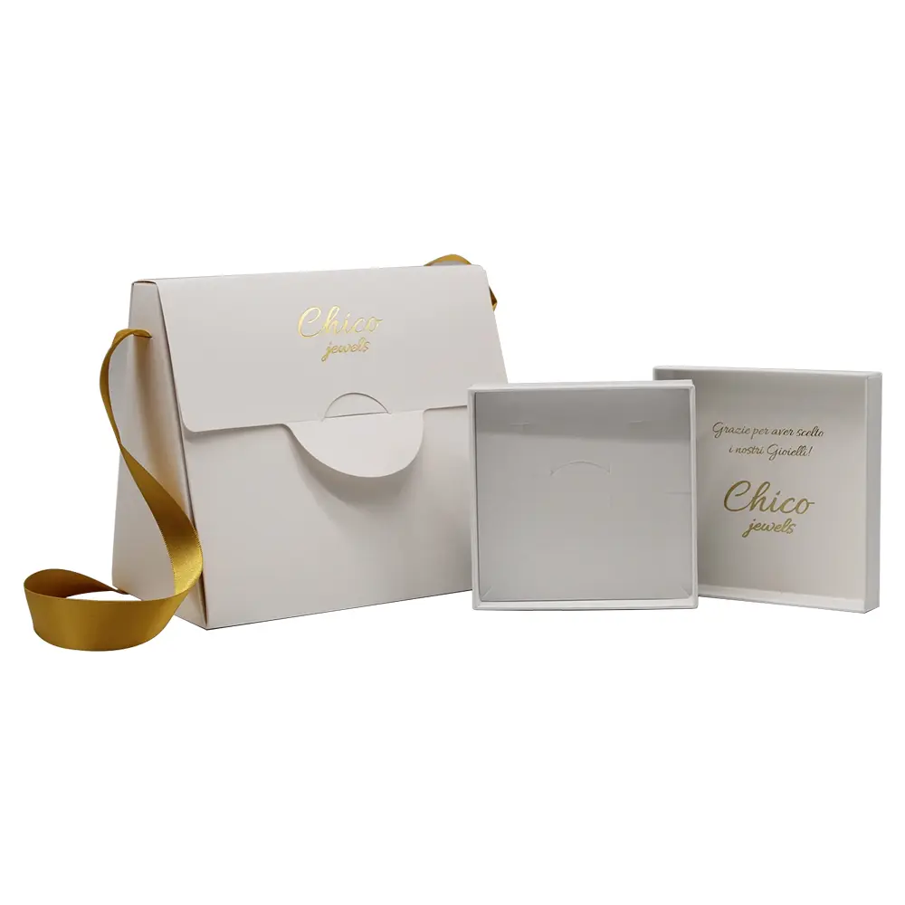 In the high-end jewelry market, the packaging is the first physical touchpoint of your brand's story. Our white luxury jewelry set is designed with a clean, minimalist aesthetic to let your brand logo shine. The contrast between the pure white paper stock and the shimmering gold foil creates an immediate sense of exclusivity and prestige, ensuring an unforgettable unboxing experience for your clients.
