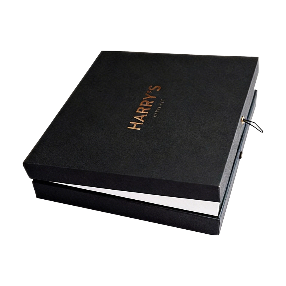 The hallmark of this design is the functional elastic loop and button closure, providing a secure, tactile interaction that enhances the user's unboxing experience. We utilize precision-cut greyboard to ensure a sharp, architectural silhouette and a seamless fit between the lid and the base. The copper foil stamping on the lid adds a metallic warmth, signaling uncompromising quality to the discerning consumer.