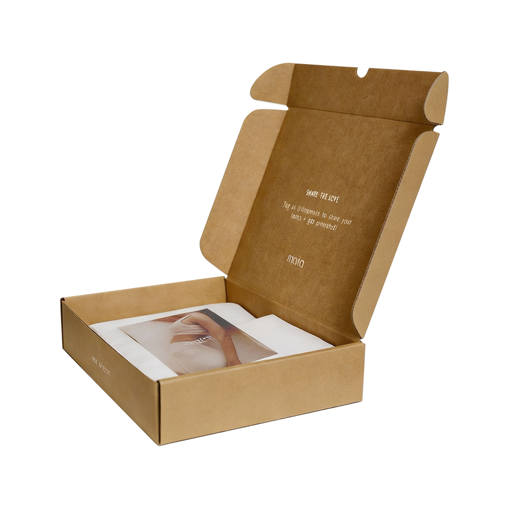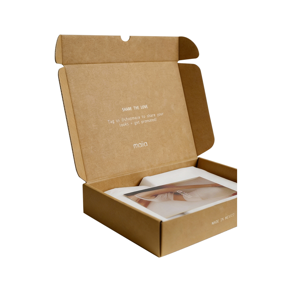 Crafted with high-strength corrugated paper, this box ensures maximum protection without the need for excessive plastic fillers. We utilize precision die-cutting for a perfect "tuck-top" fit and high-fidelity white soy-ink printing to make your brand logo pop against the organic texture. The smooth folding mechanism is engineered to provide a seamless and professional unboxing experience for your clients.