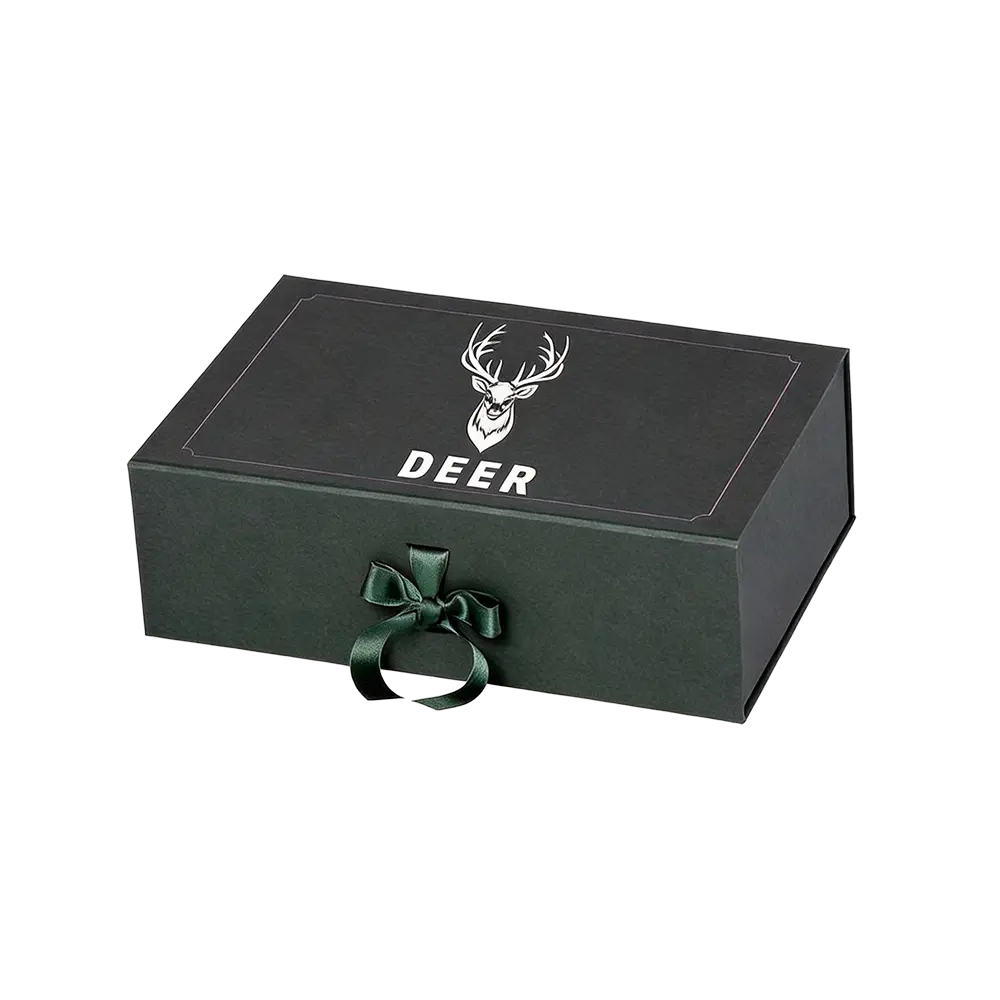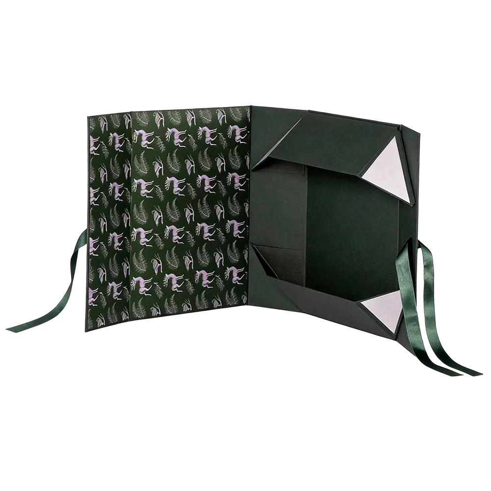 Crafted for the discerning brand, this box features a heavy-duty 1500GSM rigid core that ensures structural integrity, capable of protecting delicate items with ease. The hidden high-strength magnets provide an audible "click" closure, while the integrated satin ribbon adds a layer of ceremonial luxury to the unboxing experience. Inside, a custom-printed leaf and antler pattern provides a delightful surprise for the consumer. Our precision creasing technology allows the box to transition from a flat-packed, space-saving state to a solid presentation piece in seconds, reducing logistics costs by up to 70%.