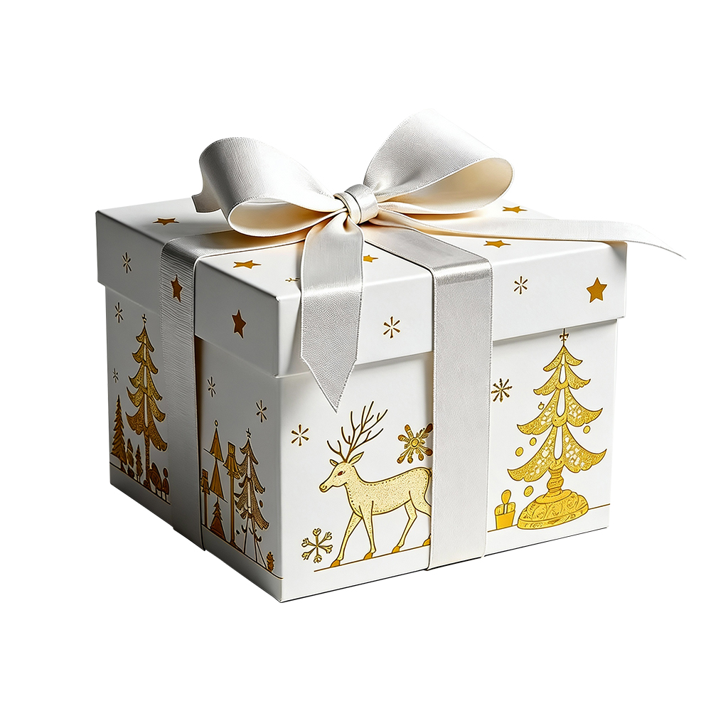 In the competitive retail landscape, seasonal packaging is the bridge between a product and a memory. Our Bespoke Holiday Gift Box is designed to evoke the magic of the season through a minimalist yet festive aesthetic. The crisp white base acts as a canvas for the shimmering gold foil illustrations, creating a high-contrast visual that signals prestige and joy.