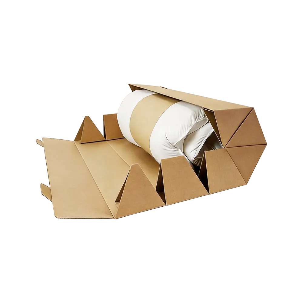 Crafted from high-strength K-K 350GSM reinforced corrugated board, this box features a unique triangular interlocking closure system. This precision-engineered mechanism allows for a 100% glue-free assembly, reducing packing time by 30% and eliminating chemical odors. The reinforced edges are designed with a 0.5mm folding tolerance, providing a structural integrity capable of withstanding a vertical stacking pressure of over 25kg. It is the ultimate eco-friendly packaging solution for premium pillows, yoga mats, or rolled foam products.