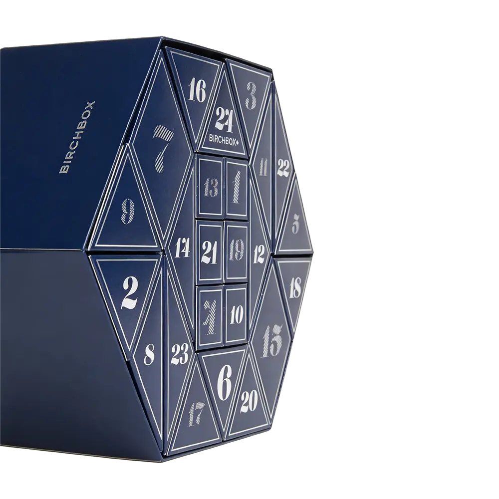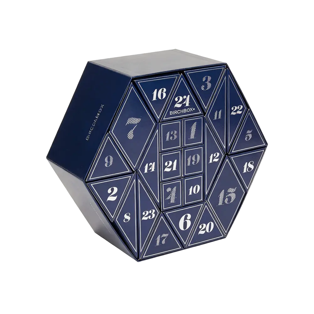 Modern luxury is defined by structure and surprise. Our bespoke hexagonal advent calendar reimagines the traditional countdown as a geometric masterpiece. Designed with a deep navy palette and striking white typography, this box serves as a high-end architectural display for premium skincare and beauty brands.