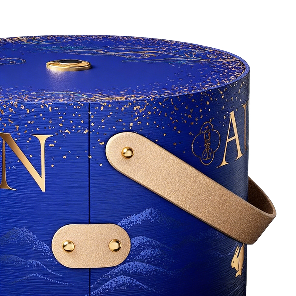 Your packaging is the first chapter of your brand's story. Our bespoke cylindrical gift box is meticulously crafted to offer a multi-sensory unboxing experience that blends traditional motifs with modern luxury. The deep royal blue finish is enhanced by a fine-lined texture, providing a tactile elegance that demands attention.