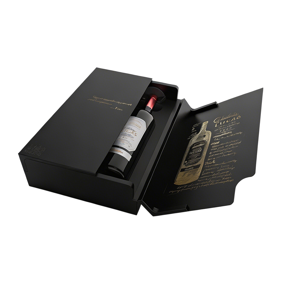 The centerpiece of this design is the stunning gold foil typography and bottle-shaped illustrations printed on the interior panels. We utilize precision die-cutting and high-density rigid board to ensure the box remains structurally sound while holding heavy glass bottles. The secure-fit inserts provide maximum protection, while the magnetic closure offers an audible "click" that signals high-end craftsmanship.