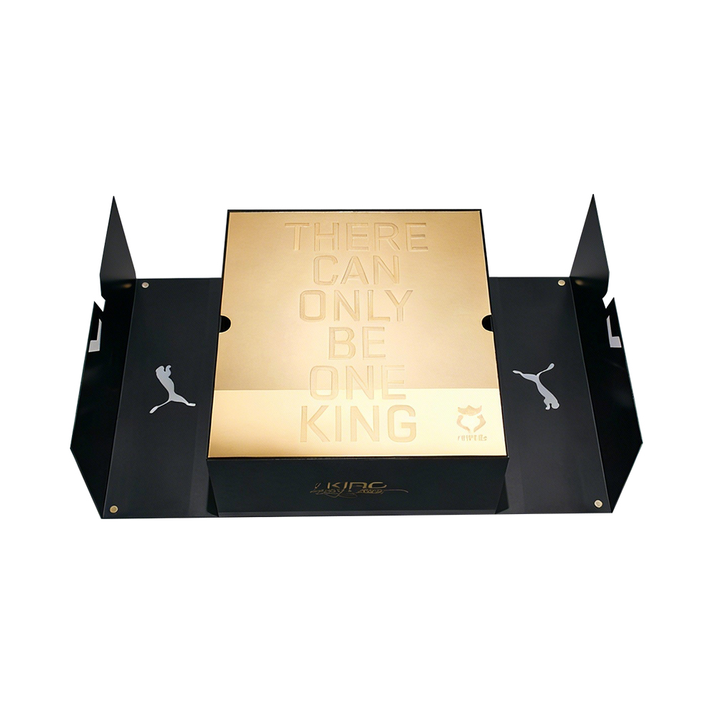 In the competitive world of high-end athletic footwear, the packaging must command as much respect as the product itself. Our bespoke luxury footwear packaging is engineered with a monochromatic matte black finish, designed to evoke a sense of power and exclusivity. The symmetrical folding structure creates a dramatic stage for the product, turning a simple purchase into a prestigious brand narrative.