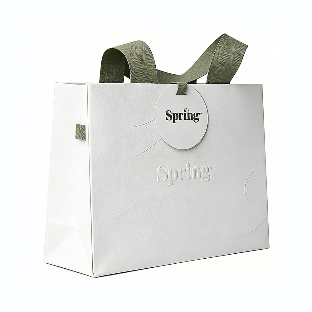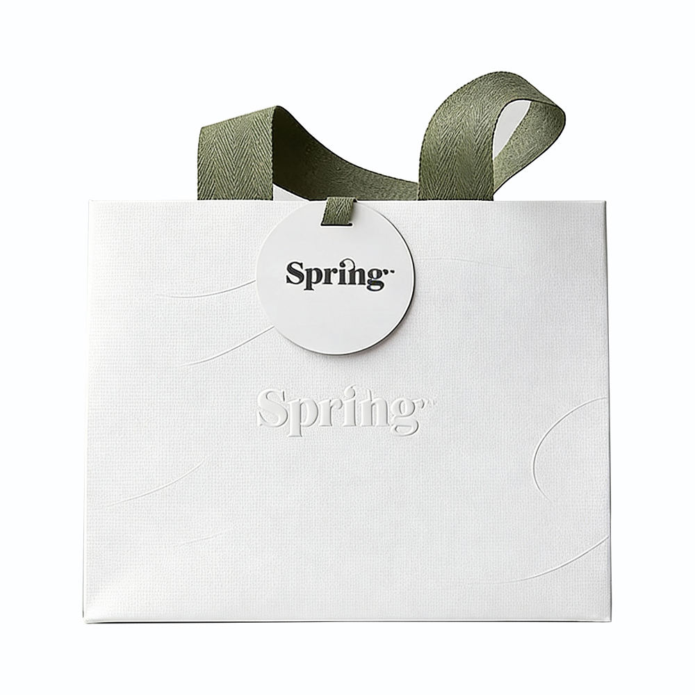 True luxury often speaks in a whisper. Our bespoke minimalist paper bags are designed for brands that value understated elegance and a seamless aesthetic. This bag features a premium white exterior with a subtle, linear linen texture that invites a velvet-like handfeel, ensuring your brand's first touchpoint is unforgettable.