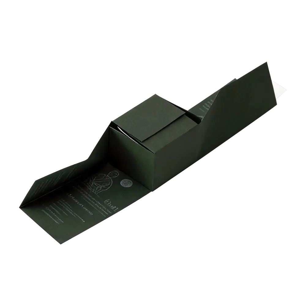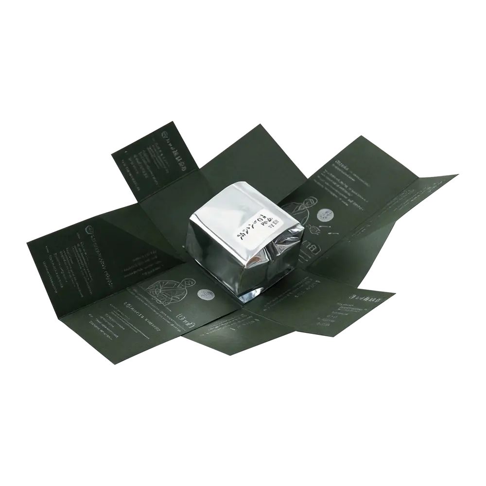 Transform your tea collection into a captivating story with our origami-inspired tea packaging. Designed for artisanal tea brands, this box utilizes a single-sheet folding mechanism that eliminates the need for excessive adhesives. The deep forest green palette and matte tactile finish create a grounded, organic aesthetic, while the unfolding cross-structure mimics the blooming of tea leaves, turning the act of opening into a sensory ritual.