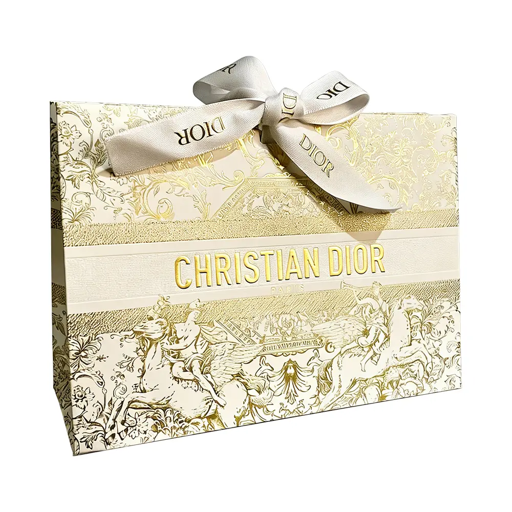In the world of high-end branding, the packaging is the first chapter of your story. Our bespoke gold-foil luxury gift bag is designed to evoke a sense of heritage and artistic grandeur. The pristine white background serves as a canvas for intricate gold-stamped illustrations of classical mythological scenes, creating a sophisticated visual rhythm that signals uncompromised quality to the consumer.