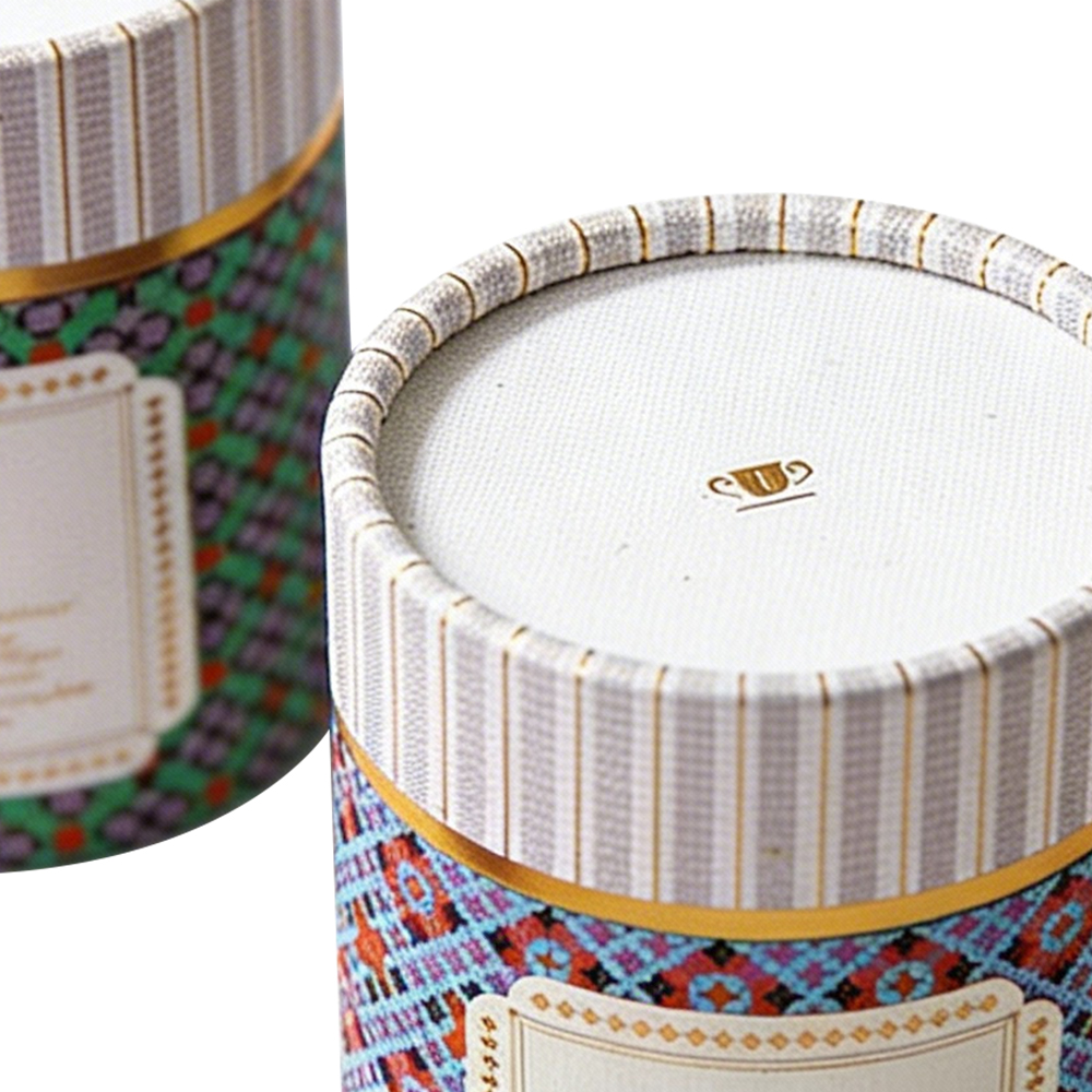 This collection is defined by its tactile complexity. We utilize high-definition offset printing to ensure every intricate geometric detail is sharp and vivid. The interface between the lid and body is accentuated by a radiant gold foil collar, adding a touch of prestige to the unboxing ceremony. Each tube is engineered with a reinforced rigid core to protect delicate tea leaves or luxury confections, ensuring structural integrity from the factory to the consumer's hand.