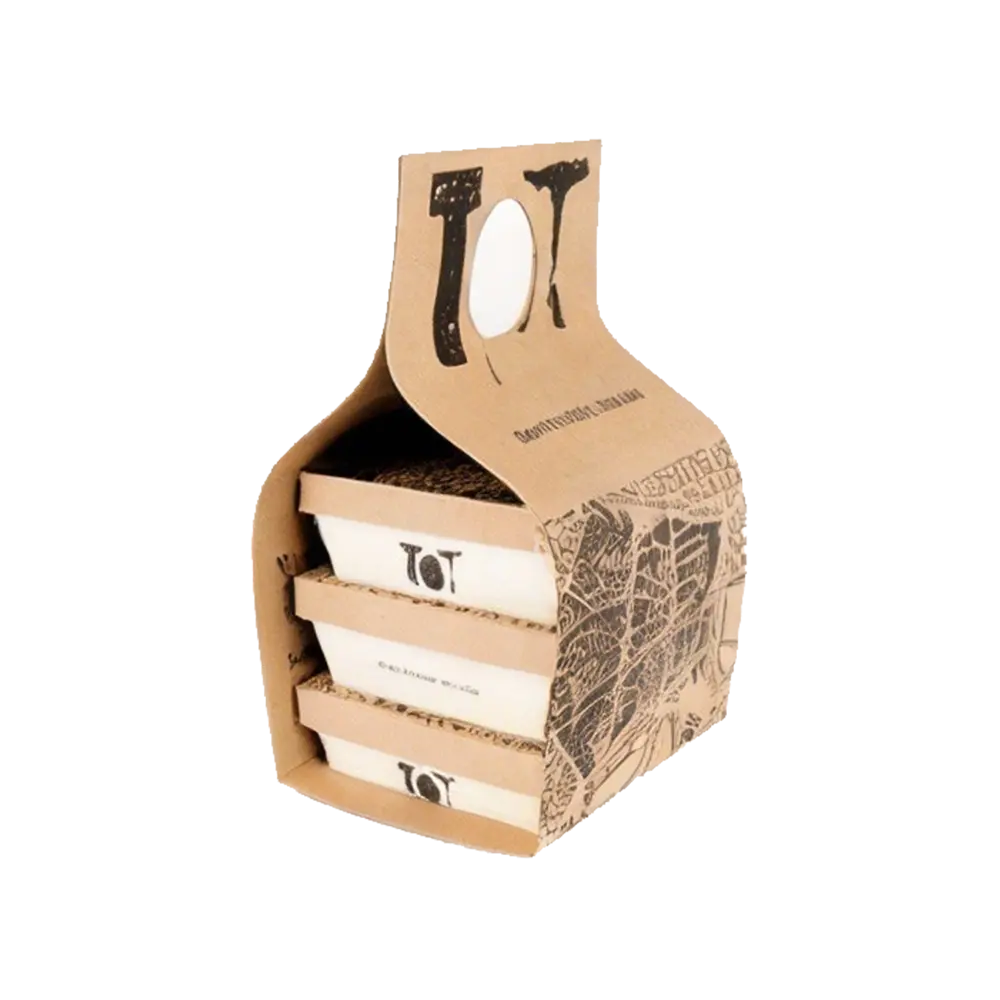 In the modern B2B landscape, sustainability is the ultimate luxury. Our bespoke multi-tier takeaway solution is engineered to eliminate single-use plastics entirely. Designed for high-end organic tapas or catering services, this packaging features an innovative interlocking sleeve that secures up to three containers using a single FSC-certified Kraft wrap. The integrated handle design removes the need for additional plastic bags, providing a seamless, eco-conscious unboxing experience.