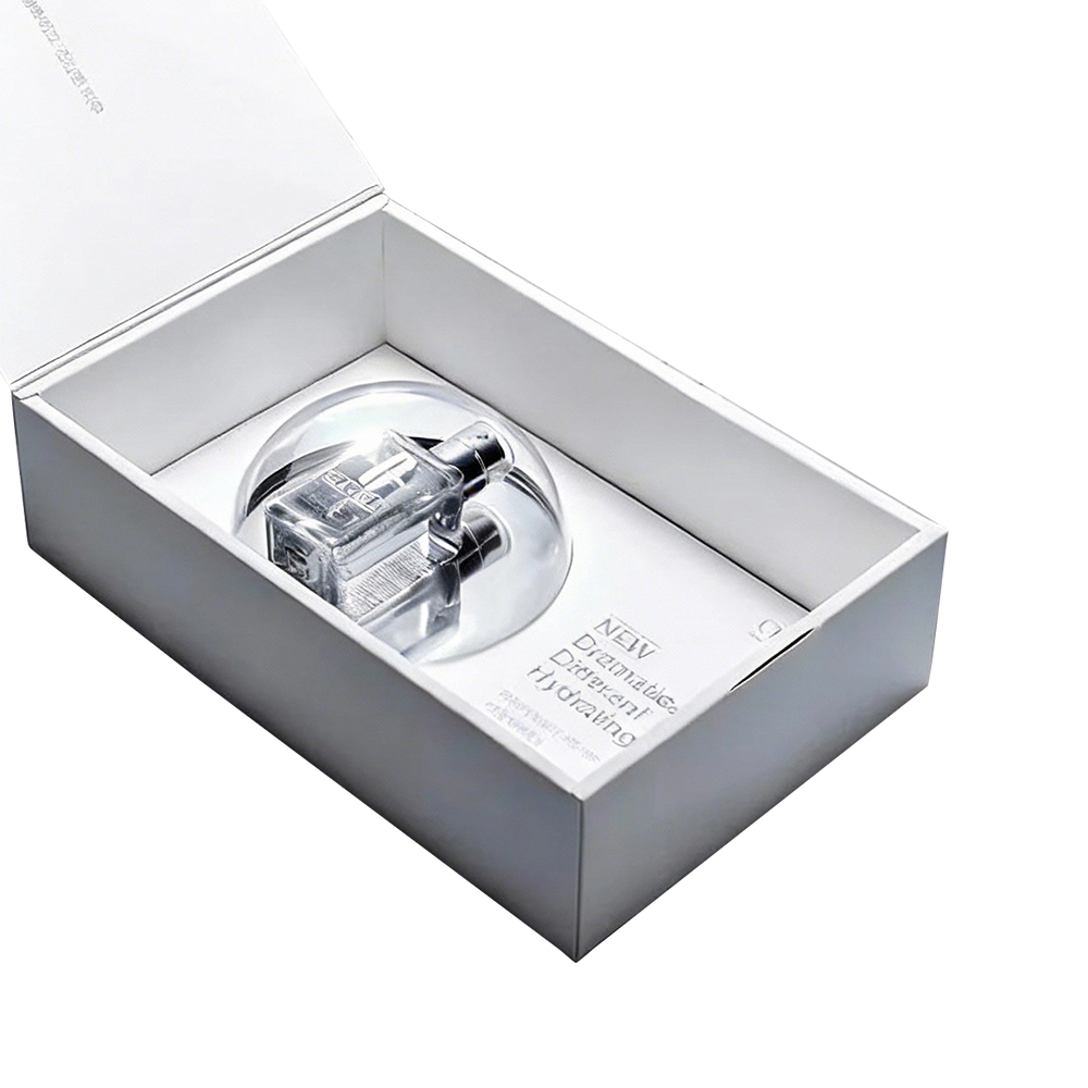 The soul of this design lies in its perfectly die-cut circular window, protected by a transparent PET dome. This "porthole" design creates a 3D visual depth, allowing customers to admire the product from multiple angles while maintaining superior structural integrity. We use premium high-density greyboard and soft-touch silver lamination to provide a velvet-like handfeel that enhances the overall unboxing experience.