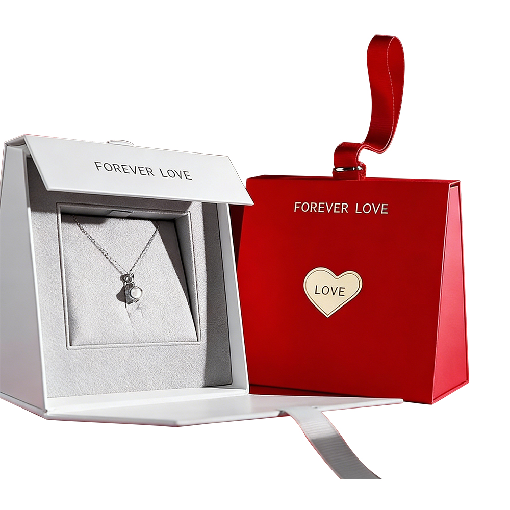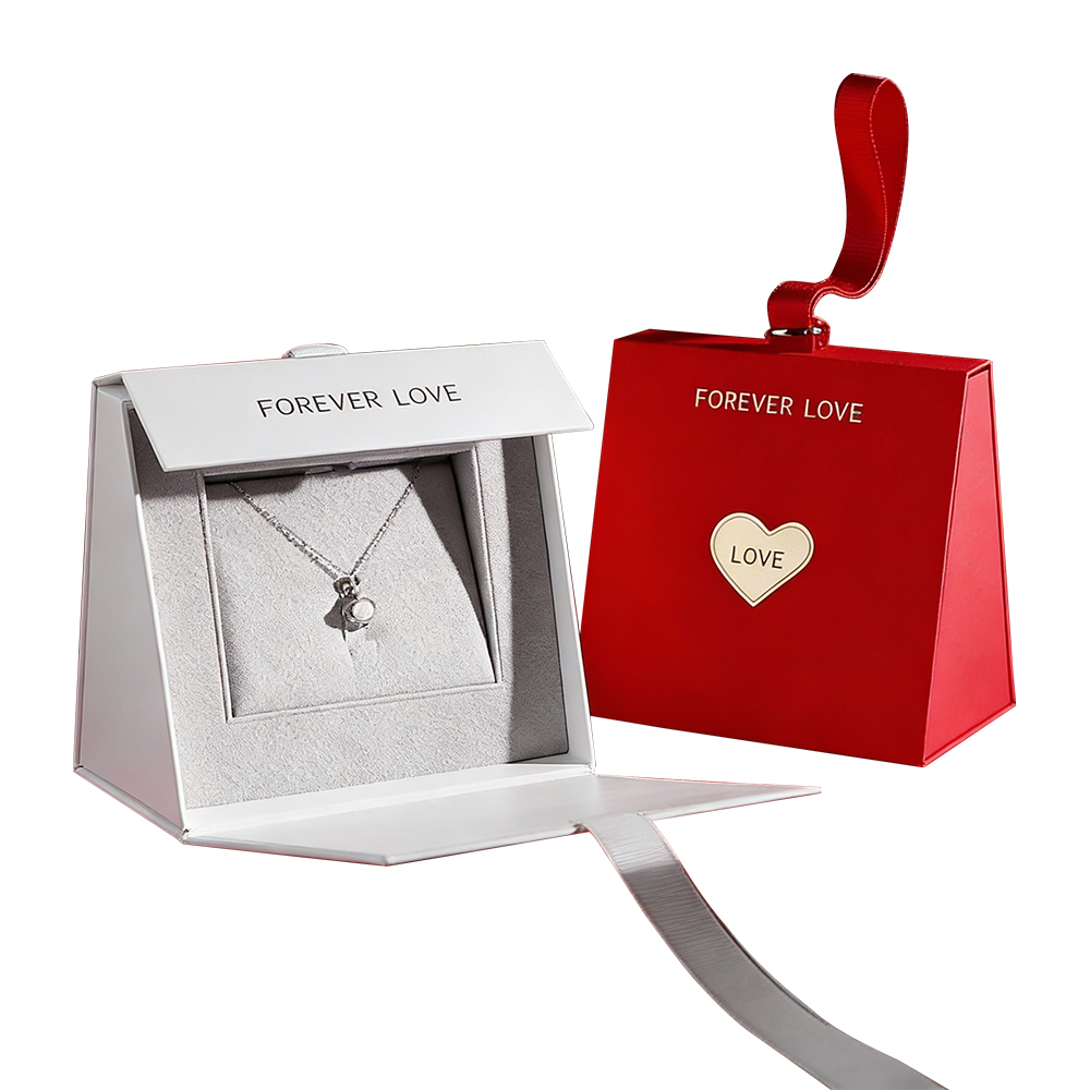 Crafted with precision die-cutting, this box features a unique folding lid mechanism that reveals the jewelry like a blooming flower. The interior is lined with premium anti-tarnish velvet, specifically engineered to protect high-end necklaces and pendants. The addition of a coordinated satin ribbon handle adds a layer of tactile sophistication, transforming a simple box into a portable piece of art.